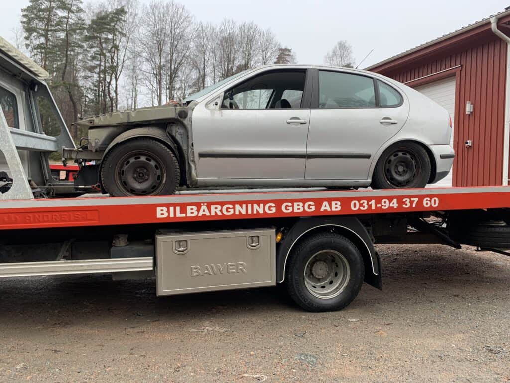 Eftersom bilen inte längre var körbar bokades hämtning direkt. Bärgningsbilen kom hem till henne och tog hand om transporten.